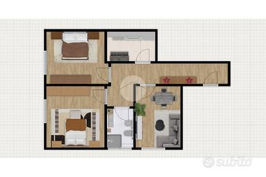 Trilocale pronto per essere abitato, caratterizzato da basse spese di gestione. L'appartamento è composto da ingresso, soggiorno con angolo cottura separato, due camere matrimoniali e bagno.