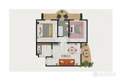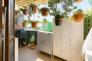 L'edificio, costruito nel 2012, ha una linea moderna con mattoncini e intonaco, materiali solidi e ben curati. Le finiture interne sono in ottimo stato, gli infissi sono in legno con vetri doppi e aria condizionata già installata. Uno dei due terrazzi è attrezzato con attacco per barbecue elettrico, perfetto per chi ama organizzare pranzi o cene senza spostarsi da casa.