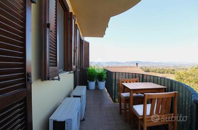 Luminoso appartamento del 2012 con due terrazzi abitabili, garage e vista aperta sulla collina di Poscargano
