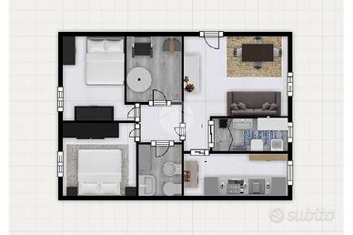Le due camere da letto, entrambe spaziose, sono l'ideale per garantire il giusto riposo e comfort, mentre i due bagni, uno più grande e uno di servizio, aggiungono praticità e convenienza per ogni membro della famiglia o per gli ospiti.