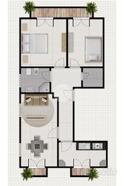 L'appartamento è composto da sala luminosa, cucina abitabile separata, due camere da letto spaziose una con camino, bagno finestrato e comodo ripostiglio. Gli ambienti sono ben distribuiti e funzionali. L'immobile è attualmente abitabile, ma necessita di interventi di ristrutturazione, rappresentando un'ottima opportunità per personalizzare la casa secondo le proprie esigenze e incrementarne il valore nel tempo.
