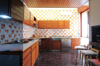 La cucina, ampiamente abitabile, è impreziosita da un camino, elemento scenico e funzionale che ne accentua l'atmosfera calda e conviviale. Adiacente troviamo un'ampia sala da pranzo, perfetta per cene di rappresentanza o per momenti conviviali con familiari e ospiti.