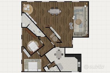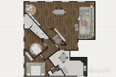 La zona notte, opportunamente disimpegnata per garantire massima privacy e tranquillità, è composta da due camere matrimoniali di dimensioni generose, facilmente arredabili e ideali per chi desidera spazi confortevoli e predisposti ad accogliere arredi importanti o eventuali zone studio. I due bagni, ben distribuiti e funzionali, includono uno spazio tecnico attualmente adibito a lavanderia, un plus sempre più ricer