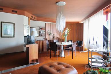 L'abitazione si contraddistingue per la metrica generosa e per una distribuzione interna di chiara vocazione rappresentativa, completamente ideata e plasmata dall'architetto Maroni. L'ingresso si apre su un maestoso salone di circa 70-80 mq, un ambiente di rara ampiezza e luminosità, articolato in un'ariosa zona living e in un raffinato salotto di conversazione. Le ampie superfici finestrate, che avvolgono l'ambiente in una luce naturale costante, conferiscono alla zona giorno una sensazione di apertura e respiro che rende lo spazio ideale per chi desidera una dimora in grado di accogliere, stupire e offrire comfort abitativo di livello superiore.