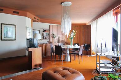 L'abitazione si contraddistingue per la metrica generosa e per una distribuzione interna di chiara vocazione rappresentativa, completamente ideata e plasmata dall'architetto Maroni. L'ingresso si apre su un maestoso salone di circa 70-80 mq, un ambiente di rara ampiezza e luminosità, articolato in un'ariosa zona living e in un raffinato salotto di conversazione. Le ampie superfici finestrate, che avvolgono l'ambiente in una luce naturale costante, conferiscono alla zona giorno una sensazione di apertura e respiro che rende lo spazio ideale per chi desidera una dimora in grado di accogliere, stupire e offrire comfort abitativo di livello superiore.