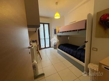 Sala a vista con angolo cottura e splendido terrazzo abitabile, zona notte composta da camera matrimoniale con parquet, camera singola, 2 bagni, altro terrazzo, completa la proprietà la cantina.