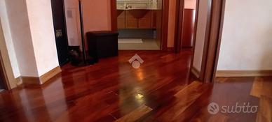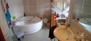 una sala spaziosa, a vista, una cucina abitabile, separata dalla stessa, tramite un muretto all'americana, un disimpegno dal quale si accede alla zona notte. Due camere da letto, una delle quali con cabina armadio, mentre l'altra camera con terrazzo. Il bagno principale molto grande ed elegante, con vasca idromassaggio, ed un secondo bagno con doccia.