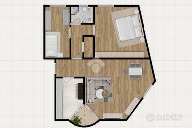 L'intervento di ristrutturazione ha interessato l'intero appartamento: pavimenti in listoni di legno, infissi in PVC con vetro termico, porte interne nuove e impianti completamente rifatti. Una soluzione che consente di entrare in casa senza dover affrontare ulteriori lavori.