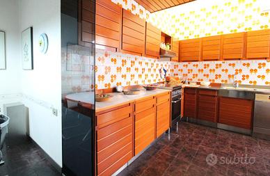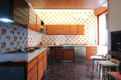 La cucina, ampiamente abitabile, è impreziosita da un camino, elemento scenico e funzionale che ne accentua l'atmosfera calda e conviviale. Adiacente troviamo un'ampia sala da pranzo, perfetta per cene di rappresentanza o per momenti conviviali con familiari e ospiti.