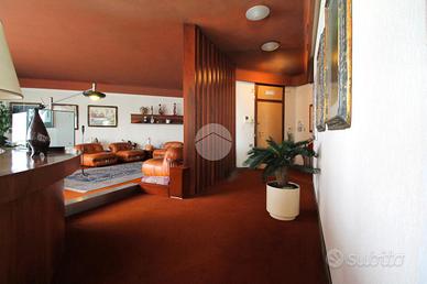 L'abitazione si contraddistingue per la metrica generosa e per una distribuzione interna di chiara vocazione rappresentativa, completamente ideata e plasmata dall'architetto Maroni. L'ingresso si apre su un maestoso salone di circa 70-80 mq, un ambiente di rara ampiezza e luminosità, articolato in un'ariosa zona living e in un raffinato salotto di conversazione. Le ampie superfici finestrate, che avvolgono l'ambiente in una luce naturale costante, conferiscono alla zona giorno una sensazione di apertura e respiro che rende lo spazio ideale per chi desidera una dimora in grado di accogliere, stupire e offrire comfort abitativo di livello superiore.