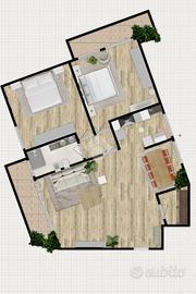 La zona notte è composta da due camere matrimoniali spaziose e luminose, facilmente adattabili alle esigenze di una coppia che desidera una stanza aggiuntiva da destinare a studio, smart working o ad altri progetti futuri. Il bagno è dotato di un ampio box doccia. L'appartamento presenta finiture moderne, porte interne curate che rendono gli ambienti attuali e pronti per essere abitati senza necessità di ulteriori lavori. L'appartamento è inoltre dotato di riscaldamento autonomo, caratteristica che consente una gestione indipendente dei consumi.