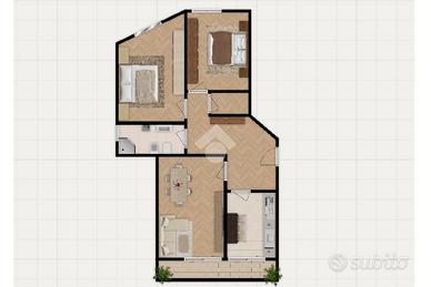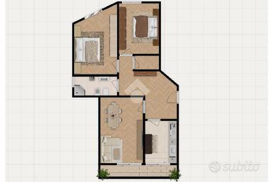Trilocale da ristrutturare con terrazzo a Borgo Bovio In una posizione pratica e ben collegata, nel quartiere di Borgo Bovio, si apre questo appartamento di buona metratura posto al secondo piano di un edificio anni '70 in mattoncini gialli, ordinato e ben abitato, dotato di ascensore. l'appartamento si compone dal soggiorno, due camere da letto, bagno e terrazzo. L'ingresso accompagna subito chi entra in una distribuzione razionale degli spazi, pensata per una vita quotidiana semplice e funzionale. Varcando la soglia, il percorso si sviluppa in modo naturale: il pavimento accompagna i passi e guida verso gli ambienti principali, che si susseguono senza forzature. La cucina abitabile conserva il carattere autentico della casa, con il camino che diventa un elemento centrale della vita domestica, ideale per scandire i momenti della giornata. Da qui si prosegue verso l'ambiente più ampio, luminoso e arioso il soggiorno, che dialoga direttamente con il terrazzo, uno spazio esterno da vivere come estensione naturale della casa. Continuando la camminata interna, si accede alla parte più riservata dell'abitazione, dove il marmo dei pavimenti dona continuità e solidità agli spazi. Le due camere, entrambe di dimensioni generose, offrono versatilità e si prestano a diverse esigenze familiari, dallo spazio per i figli a una stanza dedicata allo studio o alle passioni personali. Il bagno completa il percorso interno, mantenendo una distribuzione funzionale e coerente con il resto della casa. L'appartamento presenta interventi da prevedere, contenuti e gestibili, con la possibilità di personalizzare ogni ambiente secondo il proprio stile e le proprie necessità, sfruttando anche gli attuali bonus dedicati alla ristrutturazione. È già presente l'aria condizionata, un elemento che facilita l'organizzazione dei lavori futuri. A completare la proprietà si aggiungono una comoda cantina e la facilità di parcheggio grazie agli spazi disponibili sotto il palazzo. La posizione è st