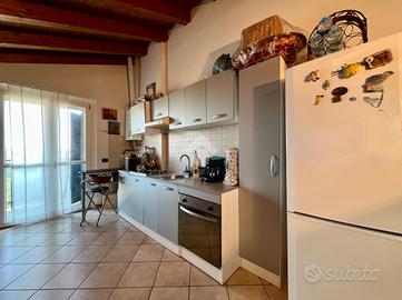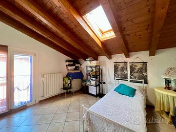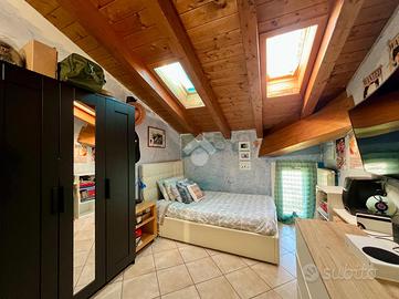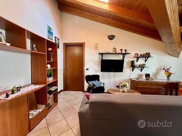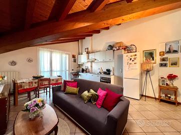In una zona tranquilla e ben servita, proponiamo in vendita un splendido trilocale situato all'ultimo piano di due, servita da ascensore. L'immobile ha recentemente subito un'importante riqualificazione energetica, che lo ha portato in classe A1, garantendo così bassi consumi e spese di gestione contenute.L'appartamento si distingue per l'atmosfera calda e accogliente, impreziosita dalle travi a vista che caratterizzano ogni ambiente. La zona giorno, luminosa e ben organizzata, si affaccia su un ampio balcone da cui è possibile godere di una splendida vista. La disposizione interna comprende un soggiorno con cucina, due camere da letto e un bagno.Completa la proprietà un box singolo e due posti auto, con la possibilità di acquistare un ulteriore box doppio in lunghezza.Un'opportunità ideale per chi cerca una casa già riqualificata, efficiente nei consumi e pronta da vivere.