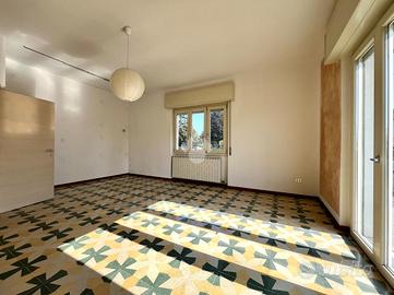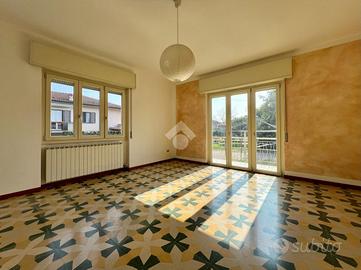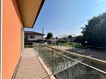La zona del soggiorno si apre su un terrazzo, ideale come collegamento all'ampio giardino di proprietà di circa 200 mq che circonda l'abitazione, offrendo uno spazio verde privato.