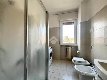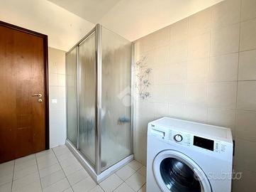 Il bagno, dispone di una doccia king size e di una lavatrice, finestrato con apertura a vasistass.