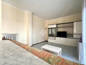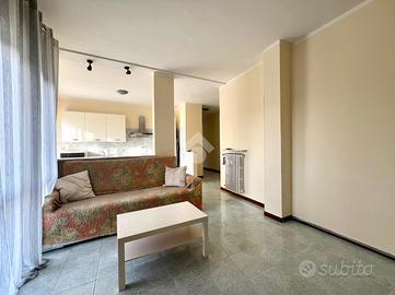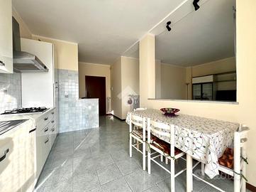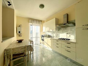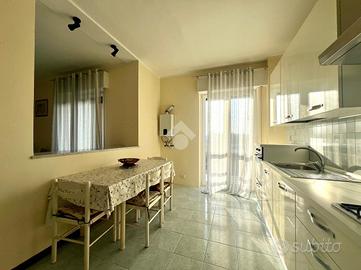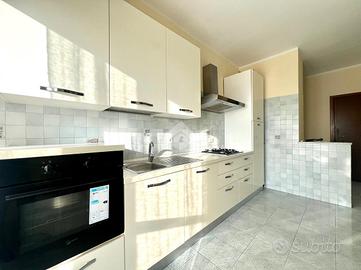 Servito dalla comoda ascensore, l'ingresso avviene sulla zona giorno, resa open space grazie alla moderna finestra a vista sulla cucina sfruttabile anche come piano snack o pranzo con una comoda penisola. Il balcone con uscita dalla porta finestra in soggiorno e in cucina è sfruttabile, viste le sue generose dimensioni, anche con un armadietto multiuso.