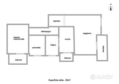 L'appartamento si compone di tre locali, tra cui due ampie camere da letto che garantiscono un ambiente accogliente e riservato. Il soggiorno, luminoso e ben distribuito, si presta a momenti di relax e convivialità. La cucina, separata, è perfetta per chi ama dedicarsi alla preparazione dei pasti. Un bagno completo serve l'intera abitazione. La presenza di tre balconi offre ulteriori spazi esterni, ideali per godere di momenti all'aria aperta.