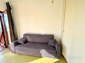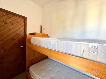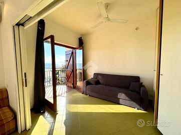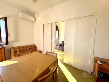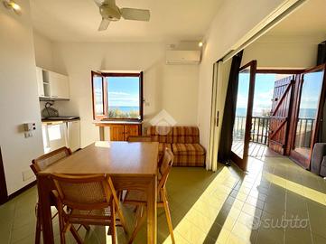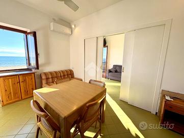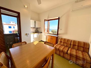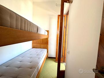 L'immobile, in ottimo stato conservativo, si compone di un luminoso soggiorno con angolo cottura, dotato di aria condizionata, un bagno con doccia, una camera matrimoniale con armadi a muro e una cameretta con letti a castello, entrambe con accesso ai rispettivi balconi.
