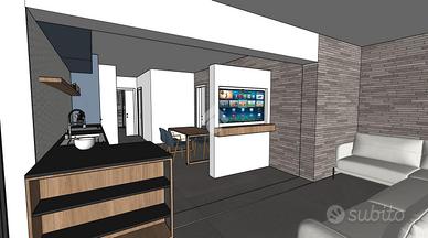 - al PIANO TERRA troviamo cucina-soggiorno che si affacciano sul giardino ad uso esclusivo, due camere e due bagni;