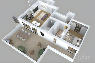 Thiene - Elegante appartamento bicamere con ampio esterno esclusivo In un contesto esclusivo, moderno e ben servito, proponiamo in vendita raffinato appartamento bicamer al piano terra, inserito in un residence di recente realizzazione. L'immobile si distingue per l'ampio spazio esterno privato di circa 36 mq, un ambiente riservato e vivibile, ideale per pranzi e cene all'aperto, momenti di relax o per accogliere amici e familiari in un'atmosfera conviviale. Il cuore della casa è la zona living open space con cucina e soggiorno, valorizzata da un'ampia vetrata che si apre direttamente sull'esterno, garantendo straordinaria luminosità naturale e una piacevole continuità tra interno ed esterno. La distribuzione degli spazi è studiata per offrire funzionalità e comfort: * Due camere da letto spaziose e accoglienti * Doppi servizi rifiniti con materiali di qualità superiore * Lavanderia dedicata, pratica e ben organizzata * Corridoio ampio, ideale per la realizzazione di un capiente armadio a muro su misura Una soluzione moderna e raffinata, dove estetica e praticità si fondono armoniosamente. Perfetta per chi desidera vivere in un ambiente elegante, luminoso e ben organizzato. Per maggiori informazioni vi aspettiamo in ufficio, previo appuntamento.
