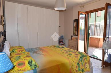 APPARTAMENTO CON GIARDINO E BOX AUTO - PRONTO DA VIVERE Proponiamo in vendita un appartamento in ottimo stato, completo di box auto di 26 mq da acquistare obbligatoriamente a €20.000, situato all'interno di uno stabile in cortina di costruzione recente (2003). Ideale per chi cerca spazi esterni accoglienti e di facile gestione, perfetto per famiglie, bambini, animali domestici o persone con disabilità grazie all'assenza di barriere architettoniche. Composizione interna: * Soggiorno con angolo cottura, luminoso e funzionale * Disimpegno che conduce alla zona notte * Due camere da letto spaziose * Bagno finestrato con doccia Caratteristiche esterne e comfort: * Giardino di 120 mq circa, parte verde e parte pavimentato, ideale per momenti di relax o per far giocare i bambini * Tende da sole esterne * Box auto di 26 mq ca. con serranda elettrica Altri comfort e sicurezza: * Climatizzatore nella zona giorno * Impianto d'allarme * Zanzariere su tutti gli infissi Posizione strategica L'appartamento si trova in una zona centrale, comoda e ben servita, vicina a tutti i principali servizi, e accesso a mezzi pubblici. Non lasciarti sfuggire questa occasione! Questa casa è pronta per essere visitata. Contattaci subito: WhatsApp: Se hai bisogno di un mutuo per l'acquisto, possiamo metterti in contatto con la nostra consulente del ramo creditizio Kiron, per un primo incontro gratuito e senza impegno presso il nostro ufficio