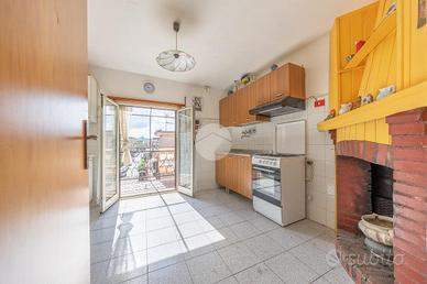 Attualmente la proprietà è organizzata in una prima unità composta da cucina, camera e bagno, e in una seconda unità più grande che dispone di un luminoso salone, cucina separata abitabile, due camere matrimoniali, bagno e due balconi.