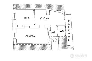 L'immobile è così composto: ingresso, cucina abitabile con balcone, sala, camera da letto matrimoniale e bagno finestrato con doccia.
