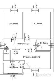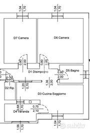 L'abitazione è composta da un luminoso soggiorno con cucina a vista, un piccolo terrazzo verandato, due ampie camere (una matrimoniale e una singola) e un bagno finestrato.