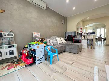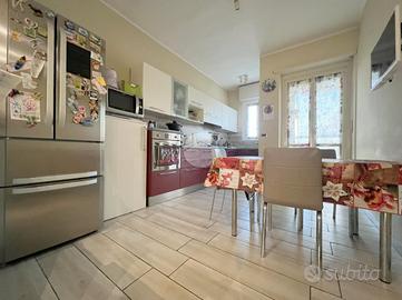 CORSO POTENZA: FINEMENTE RISTRUTTURATO AMPI BALCONI OTTIMO STABILE DUE RIPOSTIGLI In Corso Potenza, nel cuore di Madonna di Campagna, in zona comoda a tutti i servizi ed adiacente a Via Borgaro, trilocale totalmente e finemente ristrutturato posto al secondo piano con ascensore. Dal portoncino blindato si accede al corridoio che funge da disimpegno verso i vari ambienti. La cucina, abitabile ed aperta grazie ad un'apertura ad arco, è spaziosa e luminosa, grazie alla presenza di finestra e porta finestra che porta sul balcone con affaccio sull'interno cortile. Si può posizionare facilmente un tavolo al centro e la cucina può essere già di tipo lineare grazie alla generosa metratura del suddetto ambiente. Proseguendo si trova la prima camera, attualmente utilizzata come sala ma facilmente trasformabile in camera da letto per ragazzi o studio. Quest'ambiente è anch'esso di ampia metratura; attualmente infatti è arredato con ampio divano a penisola, scrivania e una generosa parete soggiorno. La sala è luminosa grazie alla doppia porta finestra che porta sul balcone con affaccio sulla via principale. Il balcone è molto ampio, in quanto collega le due camere. La camera matrimoniale è anch'essa spaziosa e facilmente arredabile con ogni tipo di soluzione, con letto matrimoniale posizionato al centro e tutta la mobilia accessoria. Il bagno infine è anch'esso ristrutturato, dotato di finestra d'areazione e presenta un box doccia. Sono presenti inoltre climatizzatori con tecnologia inverter. L'appartamento ha inoltre un doppio ripostiglio. Completa l'immobile una cantina.