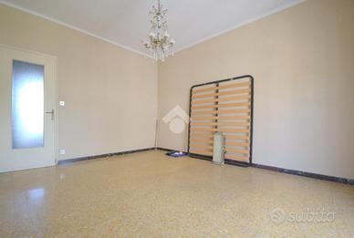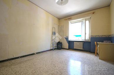 Lo stabile, costruito negli anni '50, si trova in via Gubbio, in una strada riservata ai residenti del civico 101. Il contesto nelle immediate vicinanze di via Borgaro e piazza Villari, è silenzioso ma comunque ben servito da attività, centri commerciali e mezzi pubblici. Il fabbricato è elevato su sei piani fuori terra. L'appartamento si trova al terzo piano e gode della doppia esposizione; mediante il portoncino d'ingresso si accede all'ampio disimpegno che ben divide i vari ambienti della casa. La zona giorno, composta da un soggiorno, ha una porta finestra che consente l'accesso al balcone avente affaccio sull'interno cortile. Nella zona giorno è presente il cucinino, all'interno del quale è possibile posizionare una parete cottura angolare; è dotato di finestra, la quale consente di affacciarsi sull'interno cortile. Le due camere da letto sono generose, spaziose e facili da arredare. Sono dotate di finestra la prima e di portafinestra la seconda, che permettono l'affaccio sulla via privata. Il bagno, dotato di finestra, ha la vasca e i sanitari utili. Infine è presente un comodo ripostiglio, locale utile per mantenere l'ordine all'interno della soluzione. L'appartamento si presenta allo stato originale e necessita di una completa ristrutturazione. Il riscaldamento è centralizzato dotato di termovalvole, volte ad ottimizzare costi e consumi. Completa la proprietà una cantina al piano interrato. La soluzione, offre la possibilità di parcheggiare la propria auto all'interno della strada privata.