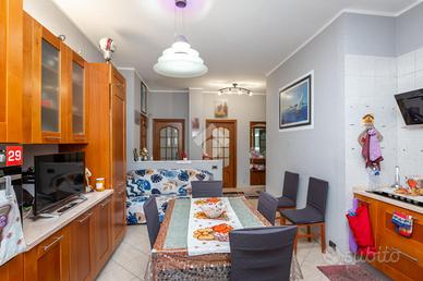 In Borgata Parella, più precisamente in Via Nicomede Bianchi, proproniamo in stabile recentemente rivisto nelle sue parti comuni, dotato di ascensore, appartamento posto ad un piano rialzato composto da: ingresso su disimpegno, ampia zona giorno living, due camere, servizi igienici, ripostiglio, balcone verandato. Dal portoncino blindato si accede al disimpegno che ben divide gli ambienti della casa. La zona giorno con cucina angolare a vista gode dell'affaccio sull'ampio balcone verandato con affaccio lato interno cortile. L'ambiente concede spazio sufficiente per un tavolo da pranzo con sedie, un comodo divano ed una parete tv. Proseguendo dal disimpegno, si accede alla zona notte composta da due ampie camere. La padronale, gode dello spazio sufficiente per un letto matrimoniale e di un armadio quattro stagioni. La seconda camera si presta invece ad essere adibita quale zona salotto, cameretta o studio, grazie alla versatilità e all'ampiezza che la contraddistingue. Servizi igienici finestrati dotati di tutti i sanitari utili, un box doccia fuori misura, ed un comodo e pratico ripostiglio come ulteriore spazio di stoccaggio completano la descrizione dell'appartamento. Infissi nuovi a tagliotermico, veranda condonata, portoncino di ingresso blindato, impianti a norma. Al piano interrato, una cantina di pertinenza.