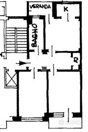 La zona giorno è composta da tinello con cucinino ed è dotata di balcone con affaccio sull'interno cortile.