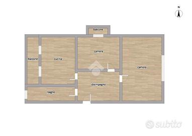 La disposizione dell'appartamento è la seguente: ingresso su disimpegno, cucina abitabile luminosa e due camere da letto di taglio matrimoniale di cui una accede al balcone. Il servizio è finestrato ed è dotato di vasca. Tripla esposizione.