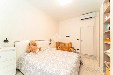 La camera da letto matrimoniale, anch'essa climatizzata, gode di tranquillità e di un balcone con affaccio riservato su cortile. Il bagno finestrato, ampio e ben rifinito, è completo di box doccia. Completano la proprietà un comodo ripostiglio e numerosi accorgimenti che migliorano il comfort abitativo, aggiunti durante gli importanti lavori di ristrutturazione, tra cui serrande elettriche, infissi in PVC con doppio vetro e porta d'ingresso blindata.