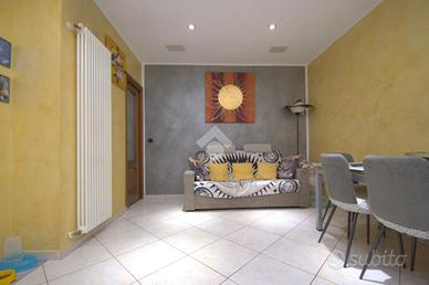 Lo stabile costruito negli anni '50, si trova in via Foligno, nelle immediate vicinanze di via Borgaro e del Parco Dora, nel cuore di Madonna di Campagna, zona ben servita da scuole, attività commerciali e mezzi pubblici. L'appartamento si trova al primo piano, è luminoso e gode di una doppia esposizione. Dal portoncino blindato d'ingresso si accede al living nella zona giorno; la quale è composta da una sala, comoda e semplice da arredare e da un cucinino a vista. Quest'ultimo ha la portafinestra che permette di accedere al balcone avente affaccio sull'interno cortile. Il balcone in oggetto è provvisto di collegamenti esterni per la luce e l'acqua, quest'ultimi ideali per realizzare una funzionale zona lavanderia esterna. Le camere da letto, sono due, dotate di una portafinestra, la quale consente l'accesso al balcone avente affaccio sulla via principale, la matrimoniale e dotata di finestra che permette di affacciarsi sempre su via Foligno, la seconda. I servizi igienici, con finestra, hanno la vasca idromassaggio, il termoarredo e i sanitari utili. L'appartamento è stato completamente ristrutturato e presenta materiali rinnovati rispetto a quelli caratteristici dell'epoca di costruzione della soluzione. Particolari note di merito vanno agli infissi esterni dotati di doppio vetro a taglio termico, bicolore, così come quelli interni in legno con inserti in vetro satinato, alla caldaia a gas, all'impianto di aria condizionata presente in tutti gli ambienti della casa e quello di filo diffusione presente nella zona giorno, oltre al sistema di sicurezza. Il riscaldamento è autonomo, ideale per ottimizzare costi e consumi. La proprietà viene completata da un locale ad uso cantina al piano interrato.