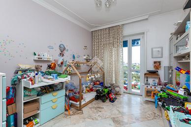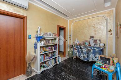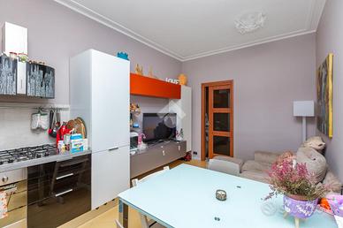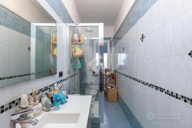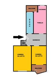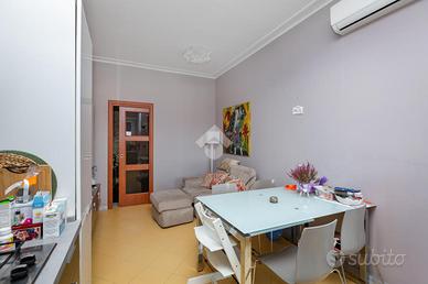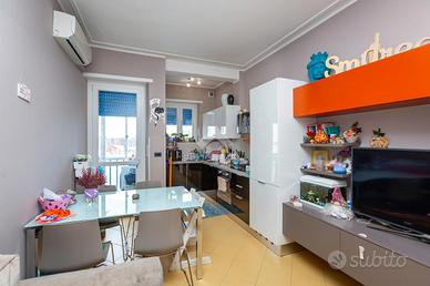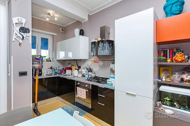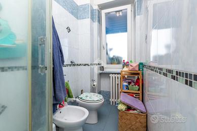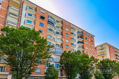 CORSO VERCELLI - L'appartamento è al settimo piano in uno stabile anni '60 dotato di ascensore e con facciata esterna rifatta recentemente. All'alloggio si accede tramite porta blindata e l'ingresso è ampio e conduce a tutti i locali. Dal tinello, spazioso e con cucinino a vista, si ha l'accesso al balcone. Il balcone è dotato di attacco della lavatrice e ha l'affaccio su interno cortile. Due spaziose camere da letto di cui una finestrata e l'altra con balcone. Entrambe hanno l'affaccio sulla via principale. Bagno finestrato dotato di tutti i servizi e box doccia. Gli infissi esterni sono in pvc con doppio vetro, le porte interne sono state sostituite, la pavimentazione è in marmo nell'ingresso e nelle due camere da letto mentre nella zona giorno è in ceramica. Riscaldamento centralizzato con termovalvole ed è presente il condizionatore nel tinello. Al piano interrato la cantina di pertinenza.