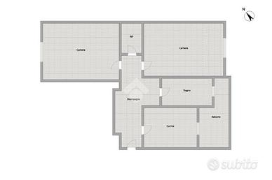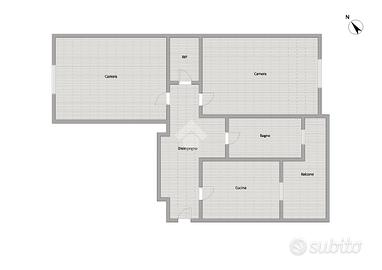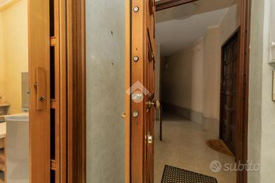 L'ingresso protetto da un portoncino introduce a un accogliente disimpegno che accompagna ai vari spazi della casa. Due luminose camere da letto di taglio matrimoniale, ampia cucina con balcone, ripostiglio ed infine servizio finestrato.