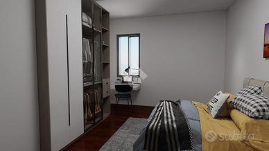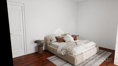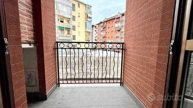 Dal disimpegno si accede alle due camere da letto, ampie e ben squadrate, di cui una dotata di balcone con affaccio su Via Rueglio, mentre la seconda dotata di finestra.
