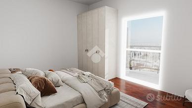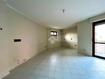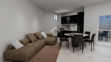 L'ingresso è living sull'ampia zona giorno dotata di angolo cottura, con affaccio sul primo balcone in cui è presente la caldaia.