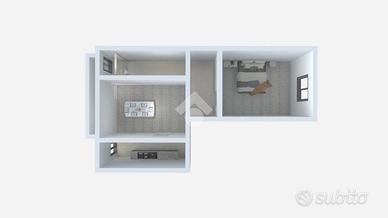 * Composizione: ingresso su soggiorno con angolo cottura, camera matrimoniale, seconda cameretta, bagno con doccia e finestra, balcone.