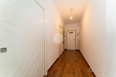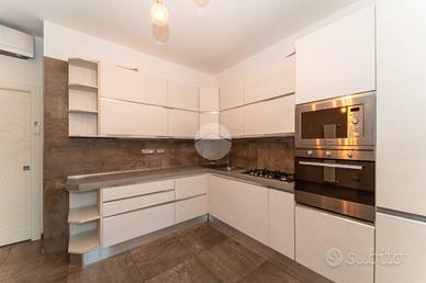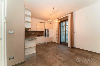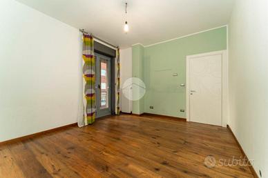 Via Michele Coppino. In zona comoda ai servizi proponiamo un immobile caratterizzato da una ristrutturazione con materiali di pregio e dalla presenza di un terrazzo di 35mq. DaIla porta blindata si accede all'ingresso che disimpegna gli ambienti, la cucina abitabile, la camera da letto, la cameretta ed il bagno. Il pavimento del soggiorno-cucina è realizzato con piastrelle 60x60 serie Marazzi effetto pietra, coordinato al rivestimento cucina con piastrelle della stessa serie 30x120, la pavimentazione del resto della casa è realizzata tutta con parquet in legno dimensioni 20x1.90 marca Listone Giordano Rovere Firenze piallato a mano e oliato. Le porte marca Bertolotto serie Costellazione laccate bianco e incise con disegni diversi l'una dall'altra, dotate di cerniera a scomparsa, a battente per la camera matrimoniale e il bagno, scorrevoli per la cameretta e il soggiorno. Il portoncino d'ingresso è blindato marca DR classe d'inflazione 3. Tutta la casa è stata controsoffittata (questo ne aumenta il potere fonoisolante del piano superiore.) Gli impianti sono stati totalmente rifatti con certificazione documentata. I serramenti sono in stato originario, mentre gli avvolgibili sono stati completamente sostituiti e sono in alluminio coibentati e dotati di motorizzazione. Placche e flutti elettrici marca Bticino serie living. Per l'impianto di condizionamento sono presenti due split DAIKIN EMURA. L'impianto di riscaldamento è centralizzato con valvole per il consumo individuale. Appartamento dotato di videocitofono. Bagno Il pavimento e il rivestimento sono stati realizzati con gress porcellanato della Marazzi serie ELAJS 21X18 lava-cotton-decorate. I sanitari WC e Bidet sono del tipo sospeso della Ideal Standa; Il piatto doccia è del tipo a filo pavimento mentre il box doccia è realizzato con vetro in cristallo extra chiaro con trattamento HST dimensioni 1.15x1.00 mt Il lavabo è in Corian inserito nel mobile bagno realizzato a misura e coordin