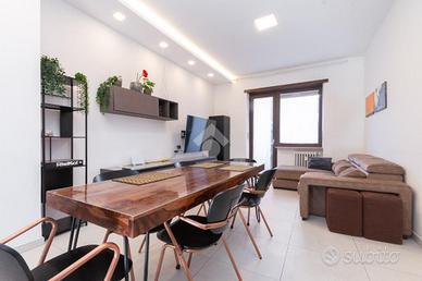 Via Osasco. Lo stabile si trova in corrispondenza del parco di Via Osasco, nelle immediate adiacenze di Corso Peschiera. La posizione è particolarmente strategica: a pochi minuti a piedi si raggiunge il Politecnico di Torino, mentre la presenza di numerosi mezzi pubblici garantisce collegamenti rapidi con il centro città e con le principali zone di interesse. Nelle immediate vicinanze sono presenti tutti i servizi essenziali, come supermercati, negozi, farmacie, scuole, ristoranti e aree verdi, che rendono la zona vivibile e completa sotto ogni punto di vista. L'immobile si trova in un contesto signorile, ordinato e tranquillo, all'interno di uno stabile curato, dotato di portineria e ascensore, segno di una gestione attenta e di un ambiente condominiale ben mantenuto. L'appartamento è situato al primo piano e si presenta in condizioni impeccabili grazie a una ristrutturazione completa realizzata nel 2022 con materiali di pregio che ha interessato ogni parte dell'abitazione. Sono stati installati infissi in doppio vetro, porta blindata, impianti elettrico e idraulico completamente rifatti e certificati, oltre a impianto di climatizzazione presente in tutte le stanze, per garantire comfort e risparmio energetico durante tutto l'anno. L'ingresso apre su un disimpegno che collega tutte le zone della casa. Il soggiorno con cucina a vista è spazioso, moderno e ben illuminato grazie alla controsoffittatura con faretti e velette a led, perfetto come ambiente conviviale e funzionale. Da qui si accede al balcone. La zona notte è composta da due camere da letto, entrambe con accesso al balcone. Il bagno, finestrato, è stato rinnovato con gusto moderno e dispone di ampio box doccia. Completa la soluzione una comoda cantina al piano interrato.