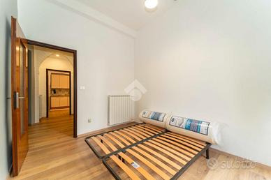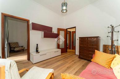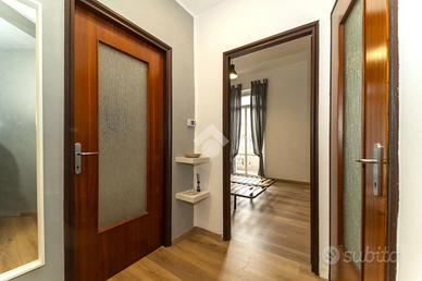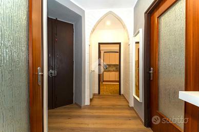 L'ingresso si apre su un disimpegno che suddivide in modo funzionale i vari ambienti della casa. La zona giorno è composta da una cucina abitabile, spaziosa e luminosa, con balcone che affaccia sulla via principale. Il soggiorno, dotato di finestra, rappresenta un ambiente versatile, perfetto sia come salotto sia come eventuale terza camera o studio. Le due camere da letto sono entrambe con balcone. Il bagno dispone di finestra.