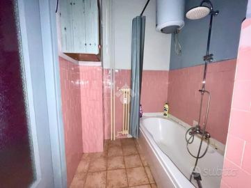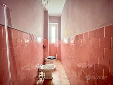 Il servizio si sviluppa in lunghezza, è finestrato ed è presente la vasca.