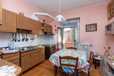CORSO GIULIO CESARE/VIA OXILIA - In stabile di inizio anni '70 dotato di doppio ascensore alloggio al sesto piano composto da: ingresso, cucina abitabile, due camere da letto, bagno finestrato e ripostiglio. Doppia esposizione (est-ovest) con due balconi. L'appartamento è in buono stato, gli infissi sono in doppio vetro e la porta è blindata. Il riscaldamento è centralizzato con le termovalvole. Completa l'unità una cantina di pertinenza al piano cortile. Libero subito.