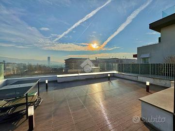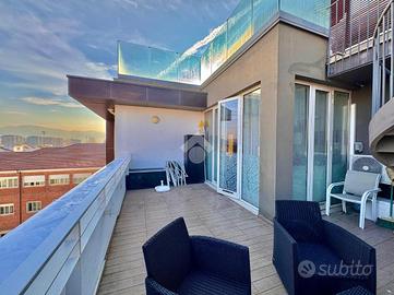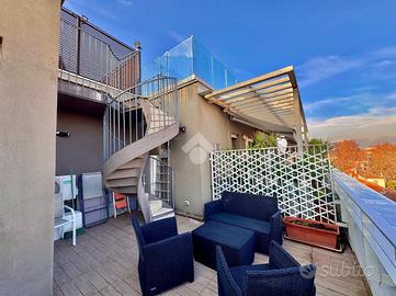 La cucina è abitabile e dà l'accesso ad un terrazzo, comodo e funzionale. Tramite una scala a chiocciola presente nel terrazzo della cucina è possibile accedere ad una seconda terrazza, panoramica e ad uso esclusivo dell'appartamento che consente di godere di una vista suggestiva sulla città.