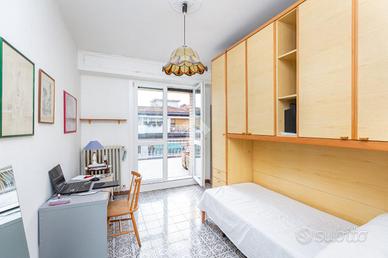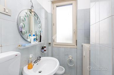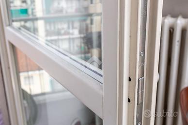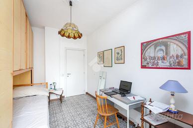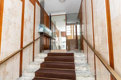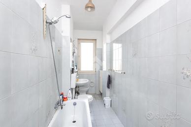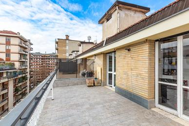 Il palazzo è ben tenuto nelle sue parti comuni ed è dotato di ascensore. Circa tre anni fa è stata ristrutturata la facciata lato via. L'appartamento è un attico sito al sesto piano ed ha una doppia esposizione. L'ingresso disimpegna ogni singolo ambiente. La cucina è composta da tinello con angolo cottura e affaccia tramite un balcone sull'interno cortile. Le camere da letto sono due ed entrambe affacciano lato via grazie ad un ampio terrazzo. Quest'ultimo rende sicuramente raro ed esclusivo l'immobile. Il bagno ha la vasca ed è finestrato. In una camera è presente un ripostiglio. L'appartamento si presenta allo stato originale tranne per quanto riguarda la porta blindata e gli infissi esterni, escluso quello di una camera. Completa la proprietà una cantina al piano interrato. Il riscaldamento è centralizzato con termovalvole.