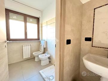 Attraverso l'anti-bagno si accede al servizio che è dotato di doccia ed è finestrato.
