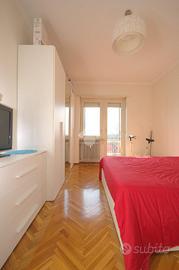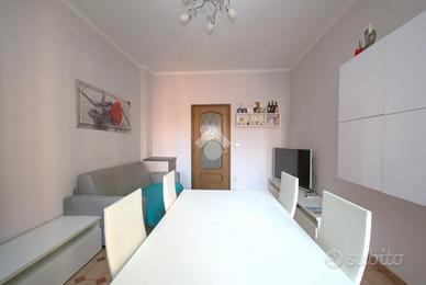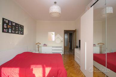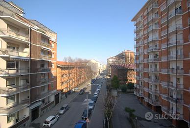 La soluzione si trova in Verolengo in prossimità di via Gubbio, nel cuore di Madonna di Campagna. La zona è servita da diverse attività commerciali, supermercati, scuole ed è circondata da aree verdi pubbliche, tra le quali, il vasto parco Dora. Nelle vicinanze vi sono le fermate dei tram 3 - 9 e del bus 72 - 72/; risulta agevole accedere all'autostrada A55 e la Torino - Caselle che distano solo 8 minuti. Lo stabile, edificato negli anni Settanta, è elevato su undici piani fuori terra ed è dotato di ascensore. L'appartamento si trova al terzo piano. Accedendo dal portoncino blindato d'ingresso, siamo accolti dal disimpegno che divide i vari ambienti della casa. Il soggiorno è dotato di portafinestra la quale permette di accedere al balcone verandato comunicante con una delle due camere, avente affaccio su via Gubbio. Completa la zona giorno un cucinotto, con finestra, all'interno del quale è possibile realizzare una comoda cucina angolare su misura. La zona notte è composta di due camere da letto, generose e semplici da arredare, dotate entrambe di una portafinestra ciascuna. Quest'ultime permettono di accedere al rispettivo balcone, avente affaccio sull'interno cortile la prima, mentre al balcone lato via Verolengo la seconda. Il bagno è funzionale, ha la finestra, la vasca, la doccia, i sanitari utili e i collegamenti per la lavatrice. Infine è presente un comodo ripostiglio, locale utile per mantenere l'ordine all'interno dell'abitazione. La soluzione si presenta in condizioni per lo più originali, con materiali ed elementi tipici dell'epoca di costruzione dello stabile, con particolare riferimento alla pavimentazione in marmo e in parquet in una delle due camere. Il riscaldamento è centralizzato dotato delle termovalvole con i relativi contabilizzatori di calore volti a ottimizzare sia costi che consumi. La tripla esposizione garantisce ariosità in tutta la casa. Completa la proprietà la cantina al piano interrato. L'appartamento sarà disponibile da Luglio 2026.
