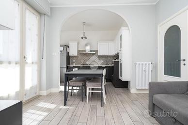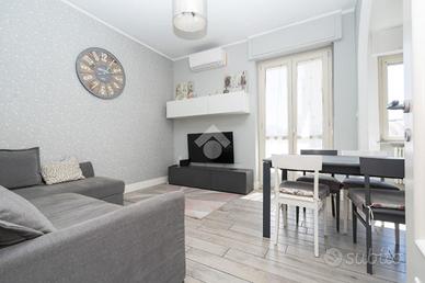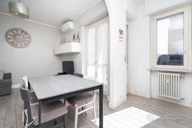 Nel cuore della località Aeronautica a Torino, comodo ai molteplici servizi della zona, proponiamo appartamento completamente ristrutturato nel 2017 offrendo un ambiente moderno e funzionale. L'immobile è situato al primo piano di uno stabile ristrutturato nelle parti comuni e dotato di ascensore. E' composto di ingresso che separa la zona giorno dalla zona notte, soggiorno molto luminoso con cucina a vista ideale per chi ama vivere momenti conviviali. Le due camere da letto sono spaziose e ben distribuite, il bagno con finiture contemporanee è dotato di doccia. La pavimentazione è in grès porcellanato e conferisce eleganza e praticità. Gli infissi esterni sono in pvc con doppi vetri, e la porta di ingresso è blindata. Ogni ambiente è dotato di aria condizionata, per un comfort ottimale in ogni stagione. Dotata di un comodo ripostiglio, utile per organizzare al meglio gli spazi. Dotato di due ampi balconi, l'alloggio è disposto su tre arie. Completa la proprietà la cantina di pertinenza.